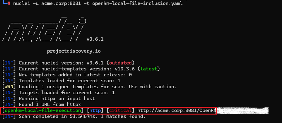Nuclei template to Local File Inclusion (LFI) on the OpenKM deployment server.