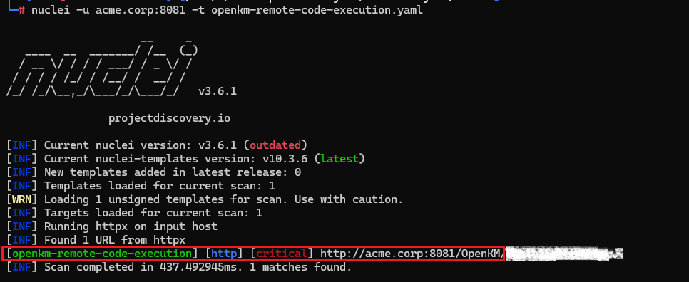 Nuclei template to Remote Code Execution (RCE) on the OpenKM deployment server.
